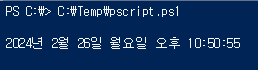 이제 맨 처음 생성한 pscript.ps1파일을 실행해 보자
