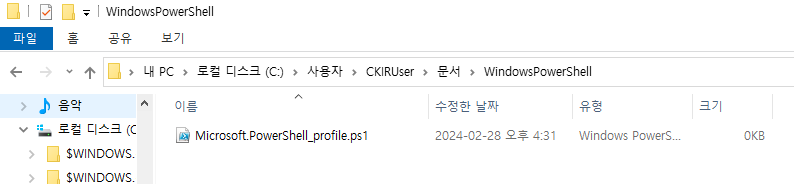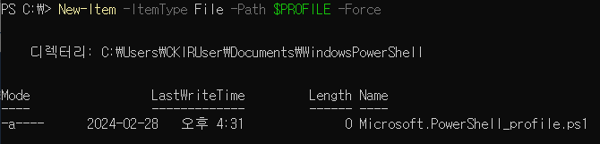 이제 PowerShell을 새로 시작할 때마다 원하는 명령이 수행된다